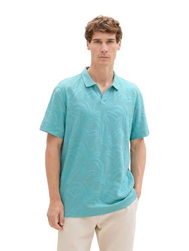 TOM TAILOR pikétröja för män, 35622 – Teal Palm Jacquard Design, XXL