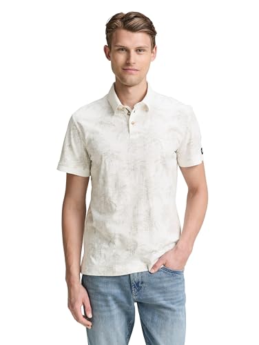 TOM TAILOR pikétröja för män, 37971 – Off White Stripe Palm Design, XL