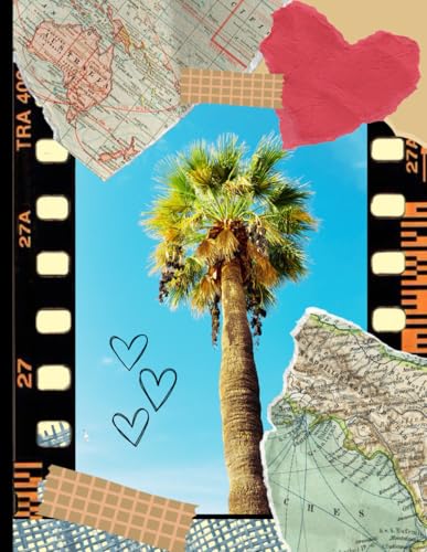 8.5" x 11" A4 Lined Paper Notebook - Scrapbook Inspired Cover with Palm Tree Design, 100 Pages for Notes, Thoughts & Memories