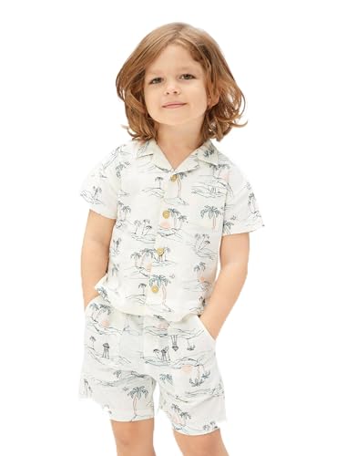Koton Babyboy linne Blend shorts elastisk midja band fickor palm tryckt, Vit design (0d0), 6-9 Monate