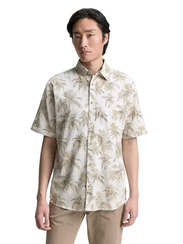 TOM TAILOR herrskjorta, 37971 – Off White Stripe Palm Design, XXL