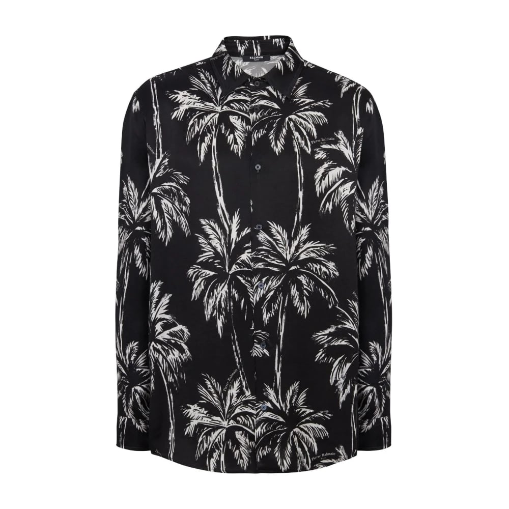 Balmain, Skjortor , Herr, L, Satin Palmier Print Skjorta