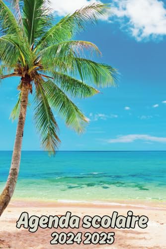 Agenda scolaire 2024 - 2025 : cahier de texte et de devoirs pour étudiants, élèves de primaire, collège et lycée - Couverture plage palmier
