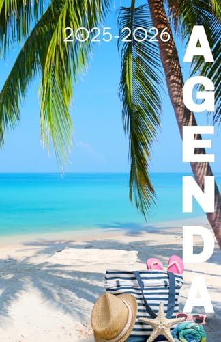 Agenda scolaire journalier 2025-2026-Thème vacances-Plage-Palmier-Sac de plage (13.34x20.32 cm) 1 page par jour