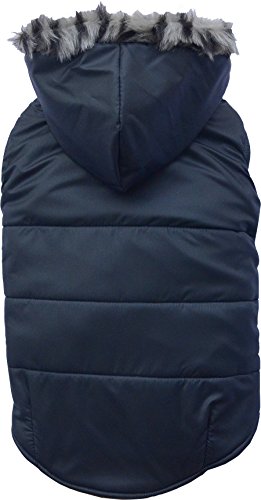 Doggydolly W066 Hundjacka med huva och konstgjord päls, svart, vinterrock/vinterjacka, storlek: S