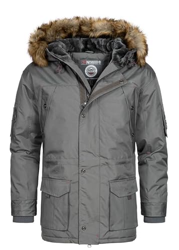 Geographical Norway Abiosaure Män - Bekväm höst vinter varm parkas - vattentät kappa utomhus päls huva jacka - vinter vindjacka man, Mörkgrått, S
