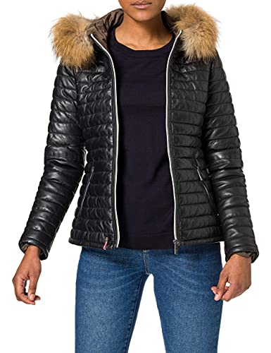Oakwood äkta läderjacka med huva och päls dam, Svart (svart 501), XL