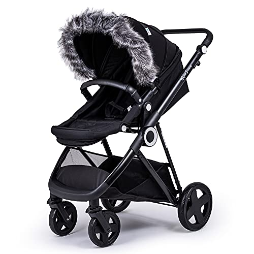 For-Your-Little-One Päls Huva Trim Barnvagn Kompatibel med Sjuksköterska, Svart