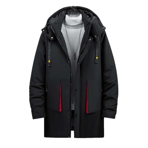 Män tjock fleece vinterjacka lång vindjacka päls huva varm parkas solid bomull ytterkläder rockar, Svart, 5XL