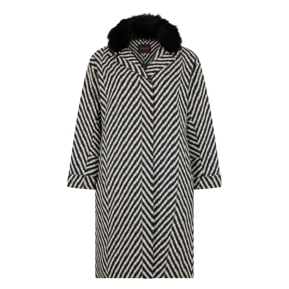 Moorer, Kappor & Rockar , Dam, L, Polyester, Elegant Zigzag Kappa med Päls