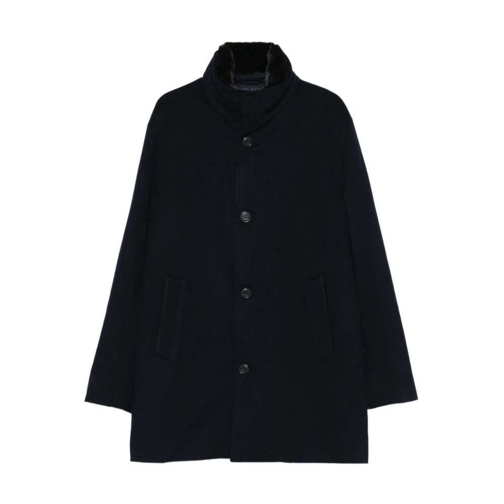 Paul & Shark, Kappor & Rockar , Herr, L, Navy Blue Päls Trim Kappa