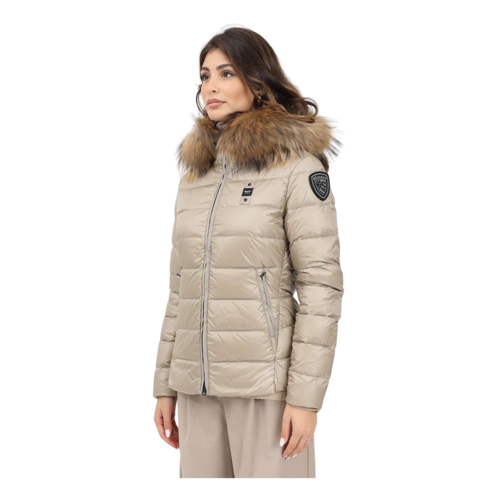Blauer, Jackor , Dam, M, Beige Quiltad Huva Kappa med Päls