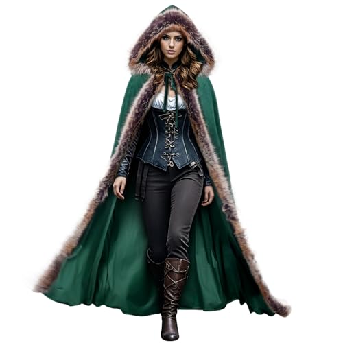 keland viking päls kappa sammet huvkappa medelålder för halloween (grön)