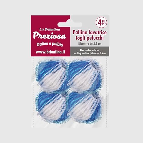 La Briantina - Set med 4 bollar av kardborreband, för tvättmaskin, djurhår och pälsborttagare - Ø 3,5 cm, ren och restfri tvätt