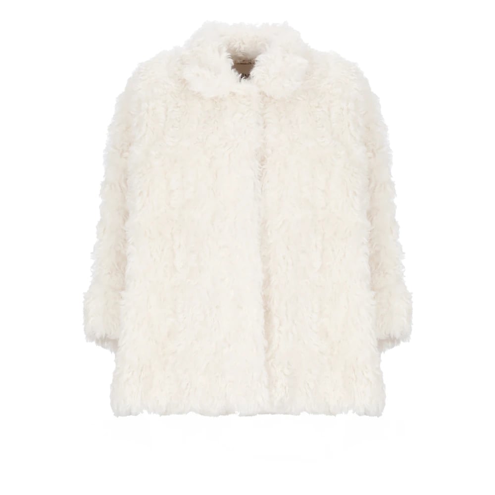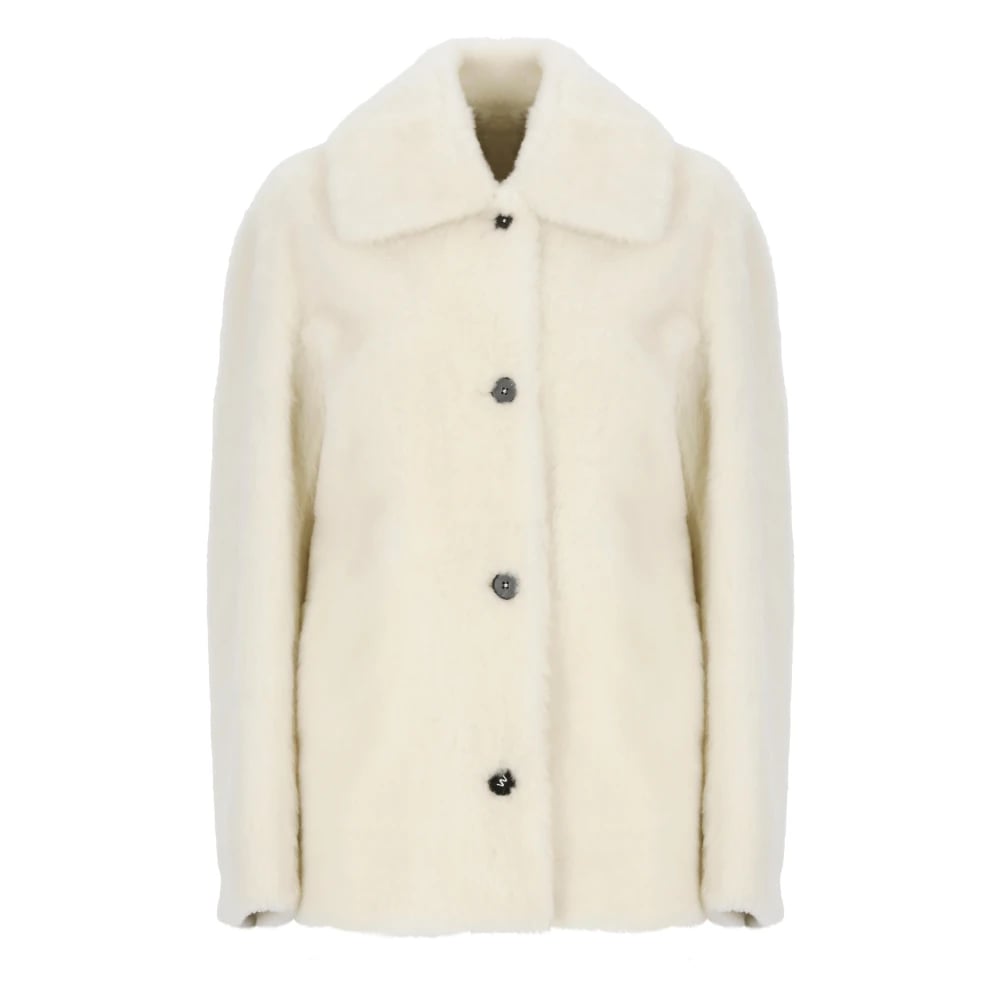 Jil Sander, Jackor , Dam, S, Elfenbensfärgad pälsjacka med krage och fickor