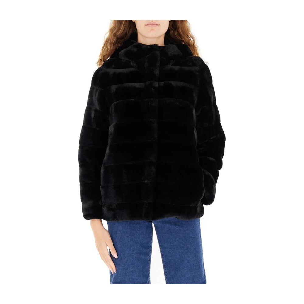 Marella, Jackor , Dam, L, Polyester, Svart Pälsjacka med Huva