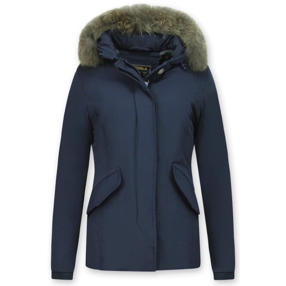 Danwear, Jackor , Dam, M, Polyester, Marinblå äkta pälsjacka 2010-500R