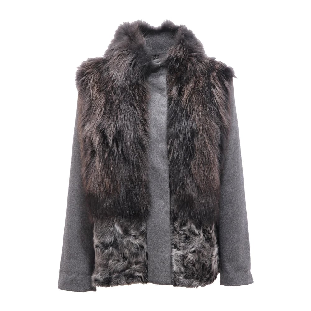 Bully, Jackor , Dam, L, Fuskpäls, Grå pälsjacka med applikationer