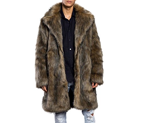 Akaufeng Pälskappa för män, lång med ficka, herrpälsjacka, BRUN, M