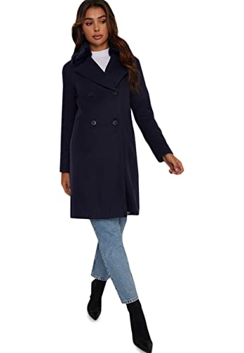 Chi Chi London strukturerad dubbelknäppt kappa med pälskrage i marinen, Marinblått Xsp, 42