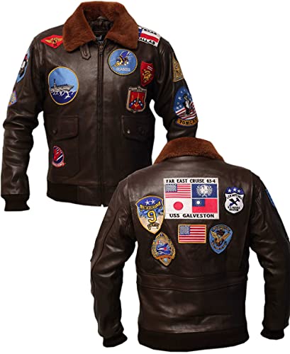 PJapparel Tom Cruise Pete Flight Bomber läderjacka för män jet pilotjacka | avtagbar pälskrage, Brun – äkta läder, L