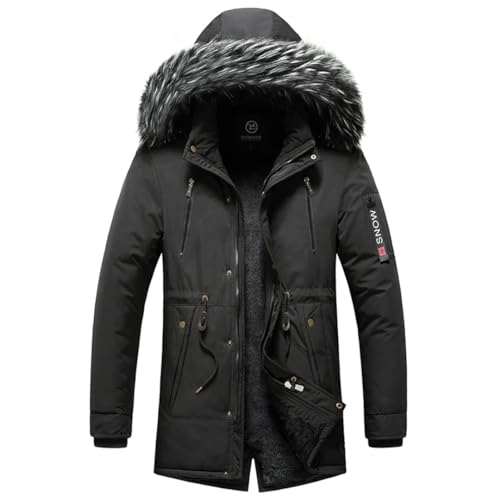 Varm vinterjacka för män vindtät parkas jacka kappa pälskrage tjocka ytterkläder avtagbar jacka, Svart, 3XL