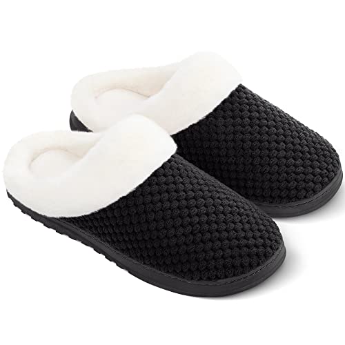 NineCiFun tofflor för kvinnor och män i mocka med minnesskum dra på fluffig pälskrage husskor halkfria inomhus utomhus, Svart, 38/39 EU