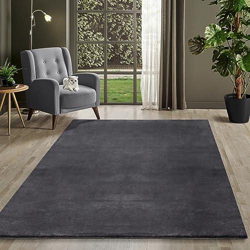 -LUXOR- levande fuskpäls coste fluffig matta sovrum – perfekt för användning som sängmatta sovrum – mysig pälsmatta lammskinnsimitation 120 x 170 cm antracit