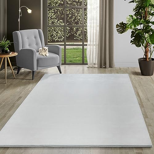 Pauwers lurvig matta i silkeslen plysch är en slät och modern pälsmatta för inomhusbruk, som är fluffig och halkfri, lekmatta för sovrum, vardagsrum och som golvmatta (ljusgrå, 120 x 160 cm)