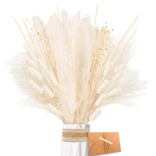 ZJTAPE Pampasgräs Torkade Naturliga Torkade Blommor - Vita Pampas Fluffiga Blad, Lagurus och Vassblomma Torkade Blommor Bukett Torkade Blommor för Bröllop Bord Vardagsrum Vaser Boho Home Decor