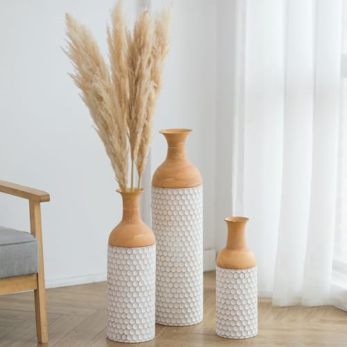 Sziqiqi Rustik Höga Golvvaser Set om 3 - Metall Extra Stor Golvstående Vas för Konstgjorda Blommor Shabby Chic Överdimensionerade Golvvaser Antik Terrakotta Golvvas för Torkad Pampas Gräs Twigs