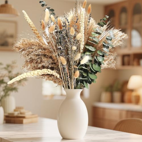 Disoza Vaser Bordsdekoration Keramisk Modern Vintage Vit Vas För Pampas Gräs Blommor Torkade Blommor Bröllop Porslin Tulpan Kök Kontor Vardagsrum 24x10x10cm
