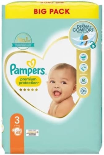 Pampers Baby blöjor storlek 3 (6–10 kg) premiumskydd, midi, 68 stycken, stor förpackning, bästa komfort och skydd för känslig hud