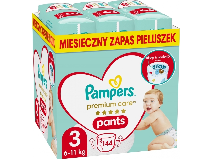 Pampers Pants Diaper Pants Size 3 144 Pieces Premium Care Diapers With Stop & Protect Anti-Leakage Back Size 3