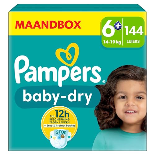 Pampers Baby-Dry storlek 6+, 144 blöjor, 14–19 kg, upp till 100% läckageskydd och komfort hela natten