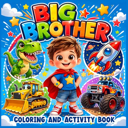 Big Brother Coloring and Activity Book: Construction Vehicles, Dinosaurs, Space & Monster Trucks Activity Book to Prepare Toddler Boys for a New Baby | Sibling Prep Gift for Ages 2-6