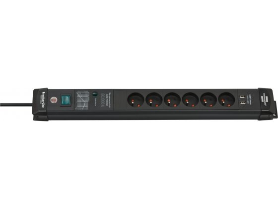 Brennenstuhl Premium-Line, Power Distribution Unit, 6 Sockets, 3.0M, Black, 2X Usb, With Switch And Surge Protection (1951164603)