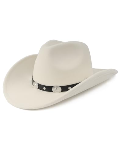 Zylioo S/M/L/XL/XXL cowboyhatt av filt för stora och små huvud, västernhatt med brett brätte, fedora panamahatt med bältesspänne för män kvinnor, Cowboy-beige, M-L