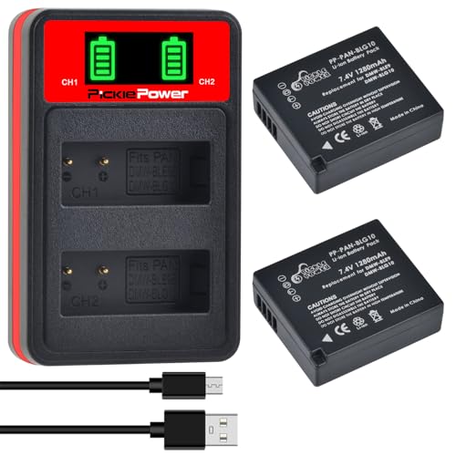 Pickle Power 2 x 1280 mAh DMW-BLE9E DMW-BLG10 batteri LED USB dubbel laddare för Panasonic Lumix DMC-ZS60 ZS110 ZS220 GF3 GF5 GF6 GX7 GX80 GX85 GX9 G10 LX100 ZS100 TZ80 TZ100 TZ101 TZ202 TZ91 TZ99