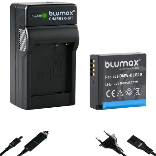 Blumax batteri kompatibelt med Panasonic DMW-BLG10 E [1025 mAh ] + laddare DMW-BLG10E/DMW-BLE9 E för Lumix DMC-GF6 GX7 III GX85 LX100 DC-TZ202 G110W