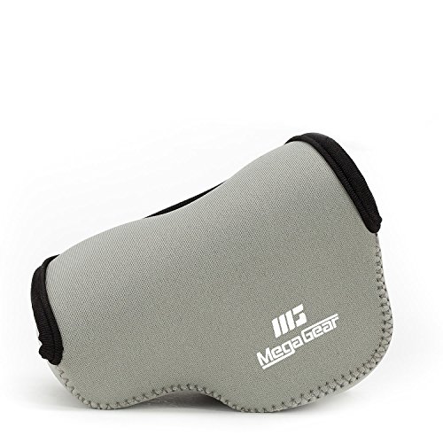 MegaGear MG1076 ultralätt neoprenfodral med karbinhake för Panasonic Lumix DC-GX850/DC-GF9/DC-GX800/DMC-GF8/DMC-GF7 kamera – grå