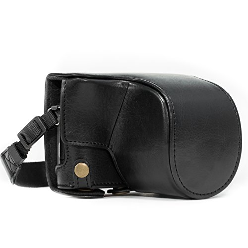 MegaGear MG1140 någonsin redo läderfodral och rem med batteriåtkomst/12–32 mm lins för Panasonic Lumix DC-GX850/DC-GF9/DC-GX800/DMC-GF8/DMC-GF7 kamera – svart