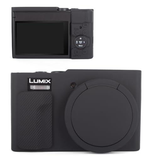 MUZIRI KINOKOO Silikonfodral kompatibel med Panasonic Lumix ZS99 kamera – mjukt skyddsfodral för DC-ZS99/TZ99 digitalkamera med avtagbart linsskydd – halkfritt och reptåligt – svart