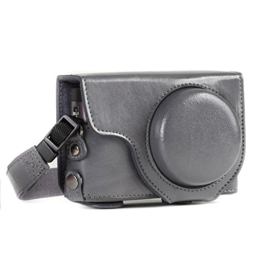 MegaGear MG1261 Panasonic Lumix DC-TZ95, DC-TZ90 Ever Ready läder kamerafodral med rem – grå
