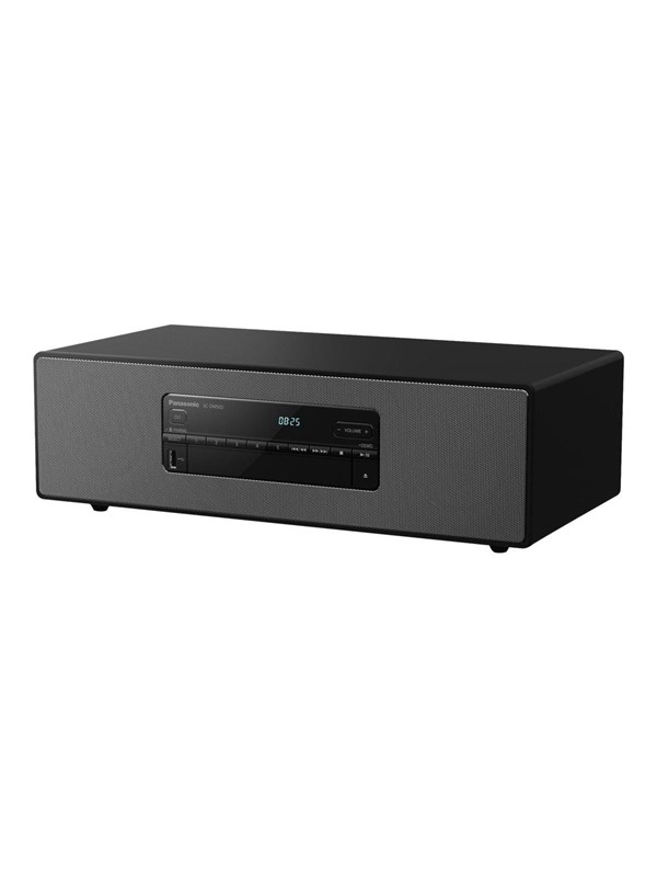 Panasonic SC-DM202EG-K kompakt mikro-Hi-Fi-stereosystem med CD, DAB+/FM-radio, USB och Bluetooth, 24 W högtalare, fjärrkontroll, 2,4 tum TFT LCD-skärm, EQ-inställningar, svart.