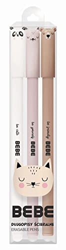 Raderbar kulspetspenna – söta djurteman – med gummi – blått bläck – panda + katt + björn – set med 3