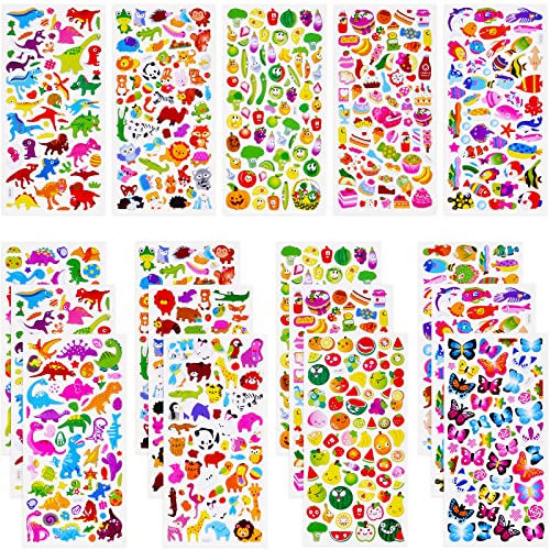 Vicloon Stora 3D-klistermärken för barn, puffiga klistermärken, 600+ barnklistermärken, 12 olika ark för att belöna gåvor, scrapbooking inklusive dinosaurie, fisk, fjäril, björn, panda, kanin med mera