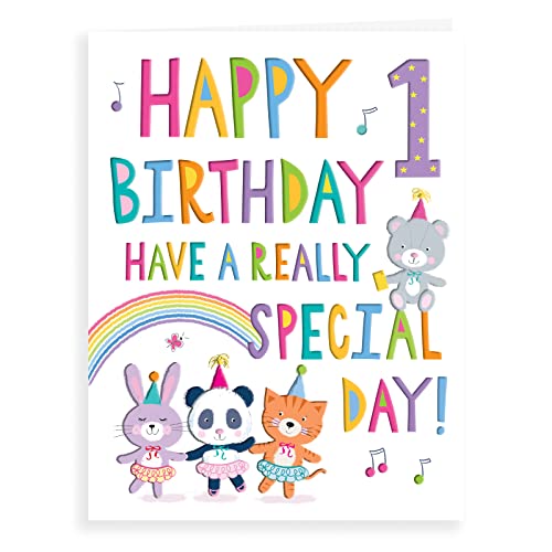Regal Cards Flicka ålder 1 födelsedagskort - björn panda kanin tiger regnbåge
