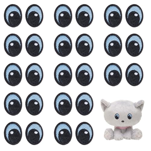 PH PandaHall 20 par svarta blå ögon termiska lappar broderade polyesterlappar tecknad ögondekorativ lapp för kläder hattar ryggsäckar skor jackor 20 x 15,5 mm