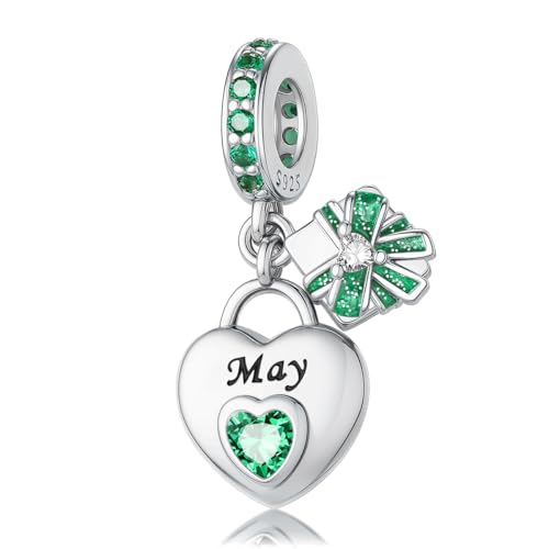 HappyStar 925 sterlingsilver hjärta zirkon födelsesten berlock för födelsedag personlig gåva pärlberlocker för kvinnor kompatibla Pandora armband födelsedag alla hjärtans dag, Sterlingsilver, Kubisk
